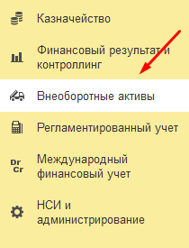 Теперь, после того как мы оформили приобретение основного средства, сделаем принятие его к учёту. Для этого переходим в раздел «Внеоборотные активы».