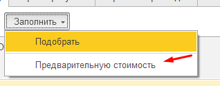 По умолчанию сюда подтягивается вся сумма, собранная на статье затрат с формированием расходов вида «При формировании внеоборотных активов» по данному основному средству. Если вдруг сумма отличается от реальной, то нужно проверить, все ли документы введены и корректная ли статья затрат в них проставлена, а также не принимаем ли мы основное средство раньше чем поступили все затраты. И после этого нажимаем «Заполнить» и выбираем «Предварительную стоимость».