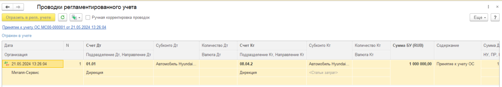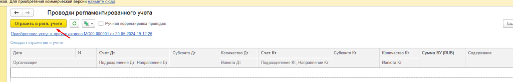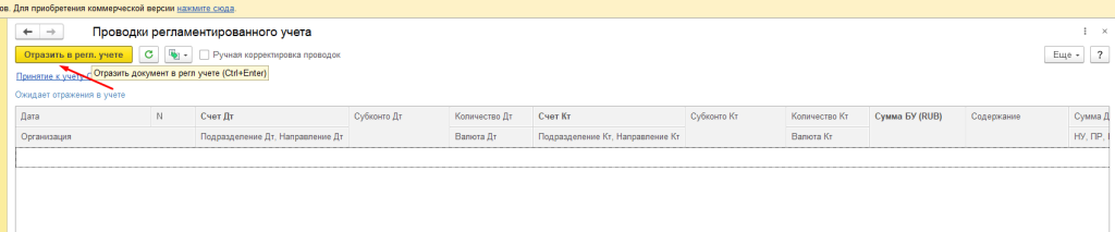Для того чтобы документ отразился в Бухгалтерском учёте, заходим в проводки