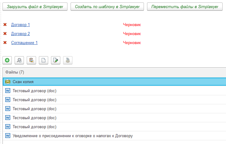 Доработанный интерфейс: появились 3 новые кнопки для отправки файлов в Simplawyer и поле со статусами документов