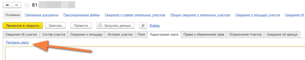 Открываем участок на кадастровой карте по команде из 1С