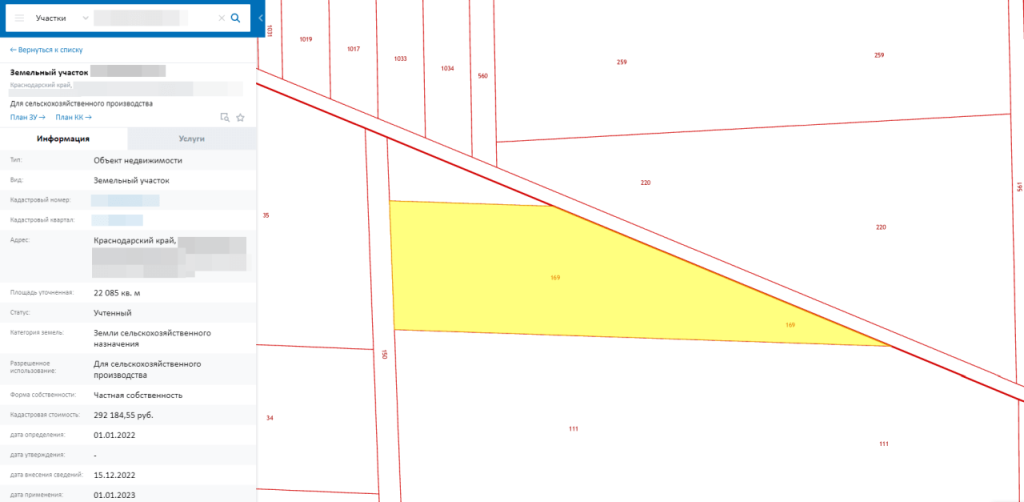 По кадастровому номеру можно получать информацию о: