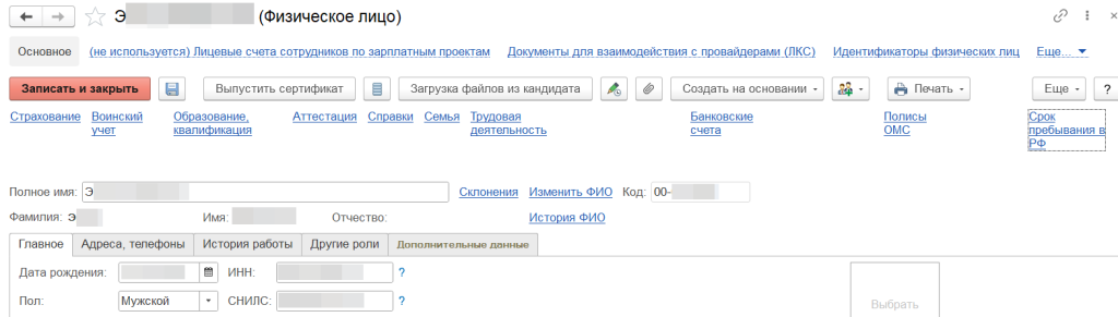 Данные в этот регистр можно также вносить через карточку физического лица, нажав на ссылку «Срок пребывания в РФ».
