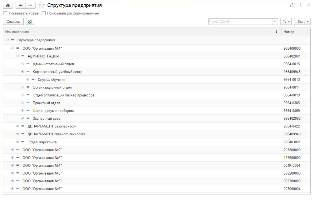 Обработка не просто копировала справочники — она воссоздала в центральной базе единую управленческую иерархию подразделений и должностей, объединив разрозненные юридические структуры в одну фактическую картину по всему холдингу.