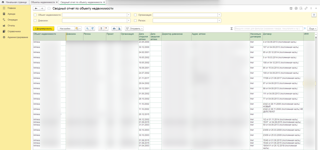 Централизованный учет аренды вместо типового решения: консолидация данных для крупной аптечной сети